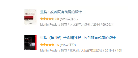 就在去年,這位先行者又全面升級了《重構(gòu)》,《重構(gòu):改善既有代碼的設(shè)計(jì)(第2版)》面世了,國內(nèi)外掀起一陣搶購熱潮,豆瓣評分更是高達(dá)9.5分。